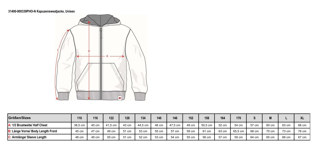 Produktinformationen "Kapuzensweatjacke, Unisex "